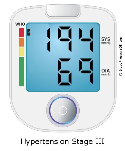 Blood Pressure 194/69 on the blood pressure scale