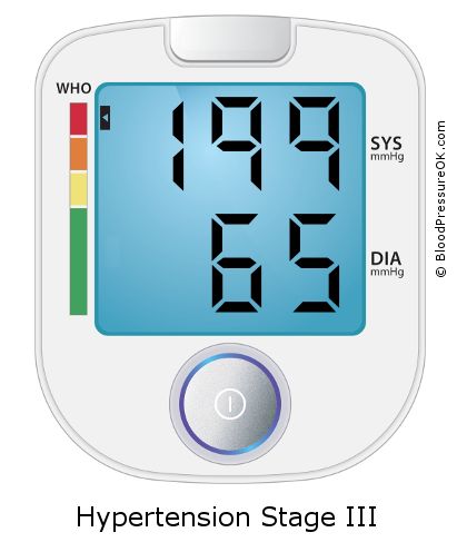 Blood Pressure 199/65 on the blood pressure scale